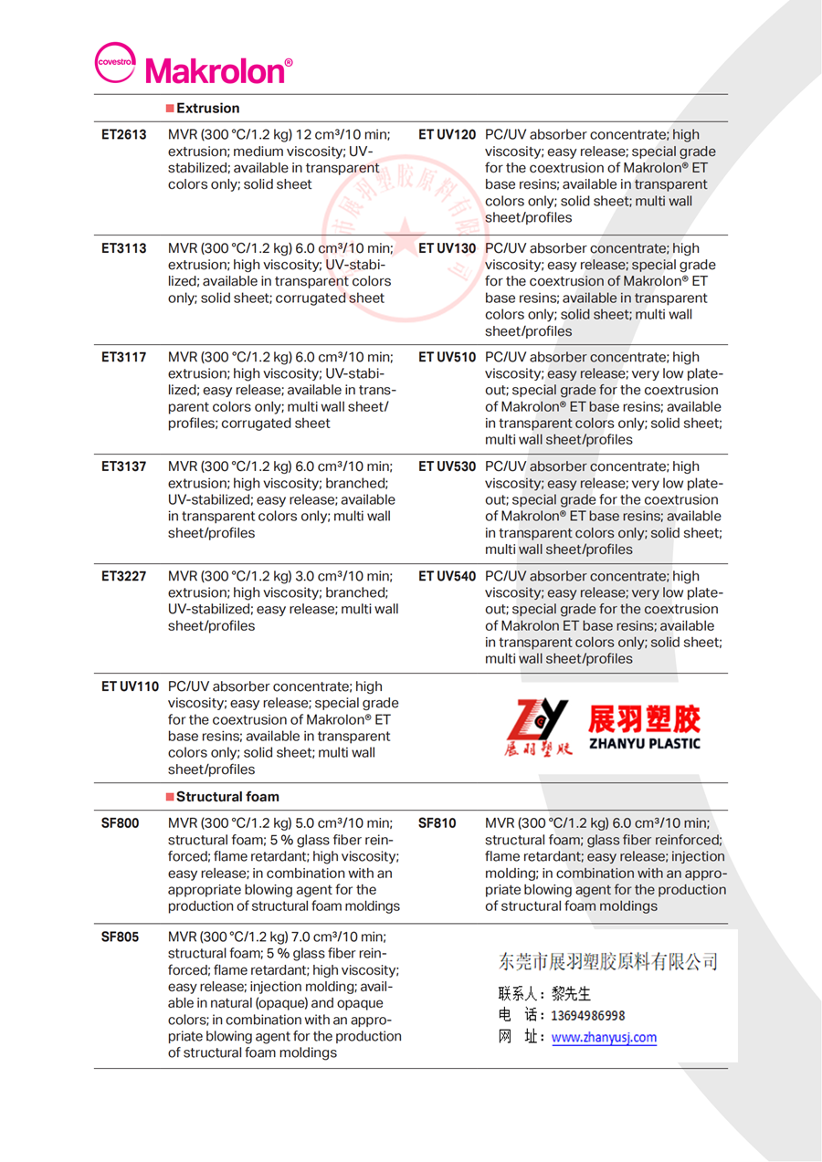 科思创PC 食品级PC 医疗级PC 无卤阻燃PC 玻纤增强PC 光学级聚碳酸酯